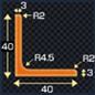 加工可能範囲の詳細では、アングルの板厚分を⇒【板厚】。アングルの内側のR分を⇒【R】と表現しております。